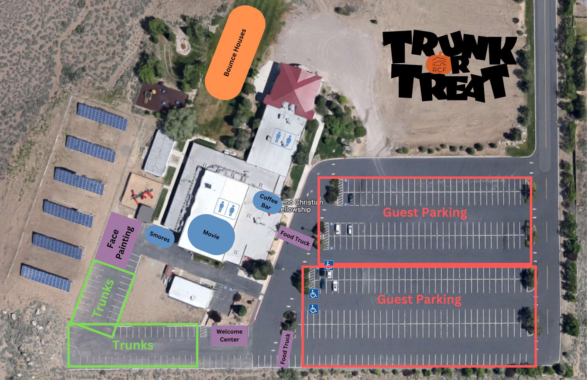 Join us on Sunday, October 26th from 3:30-5:30 for an afternoon of Trick-or-Treating at over 40 trunks. We will have bounce houses, food trucks, S'mores, a movie playing and much more.